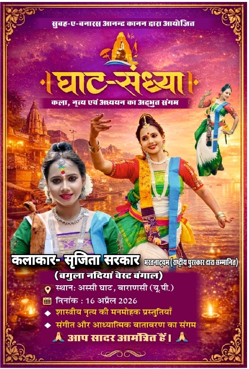 Subah-e-Banaras Present Ghat Sandhya Cultural Event Ritayanti Chowdhury Kathak Venue: New Asi Ghat Date: April 23 2026 Time: 6:00 PM